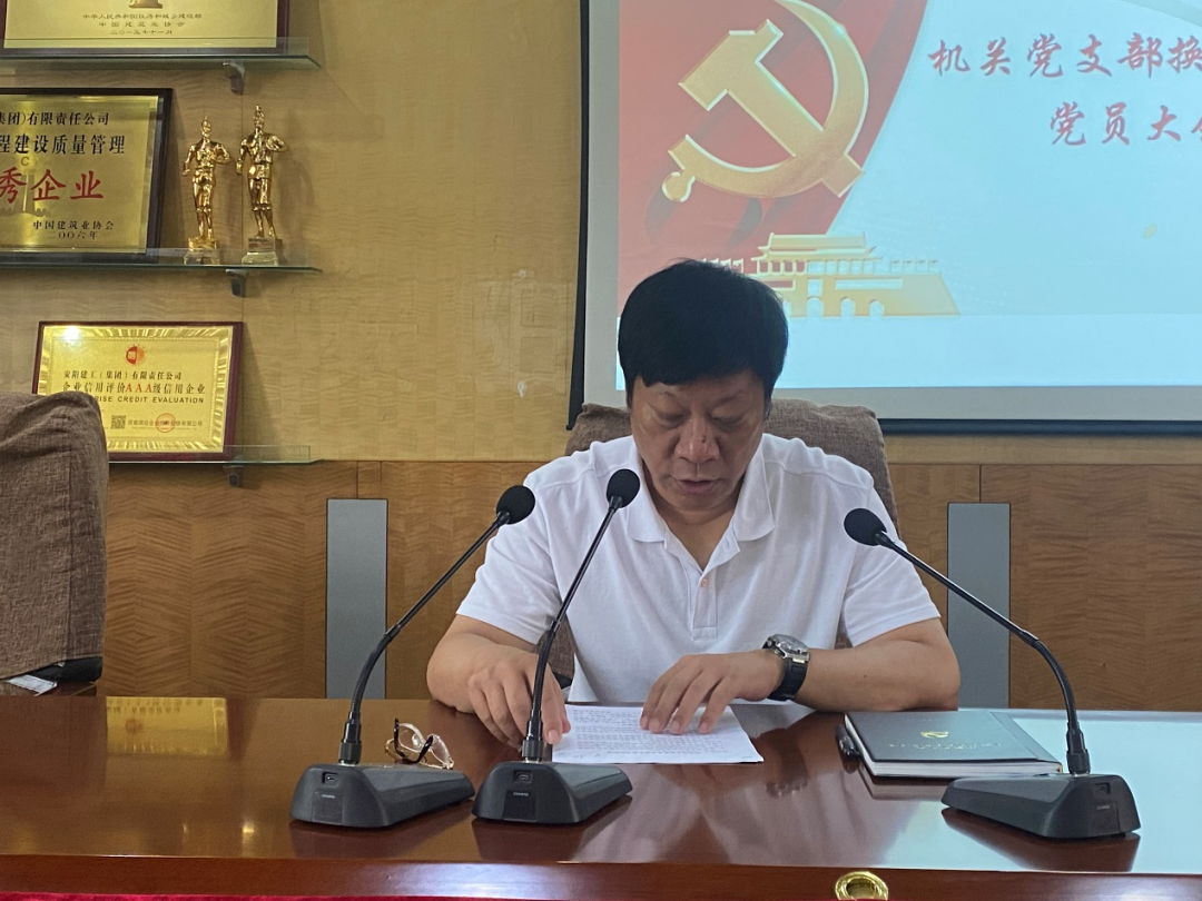 2022年7月22日,中共安陽建工(集團(tuán))有限責(zé)任公司委員會機(jī)關(guān)黨支部在公司三樓會議召開全體黨員大會,機(jī)關(guān)黨支部委員聶磊主持會議,會上,機(jī)關(guān)黨支部書記常新艷同志作了三年黨支部工作報(bào)告,總結(jié)了機(jī)關(guān)黨支部在思想建設(shè)、組織建設(shè)、作風(fēng)建設(shè)、黨建引領(lǐng)等方面的工作成績和存在的不足,并提出了今后工作思路。全體黨員一致表決同意上屆黨支部的工作報(bào)告。
