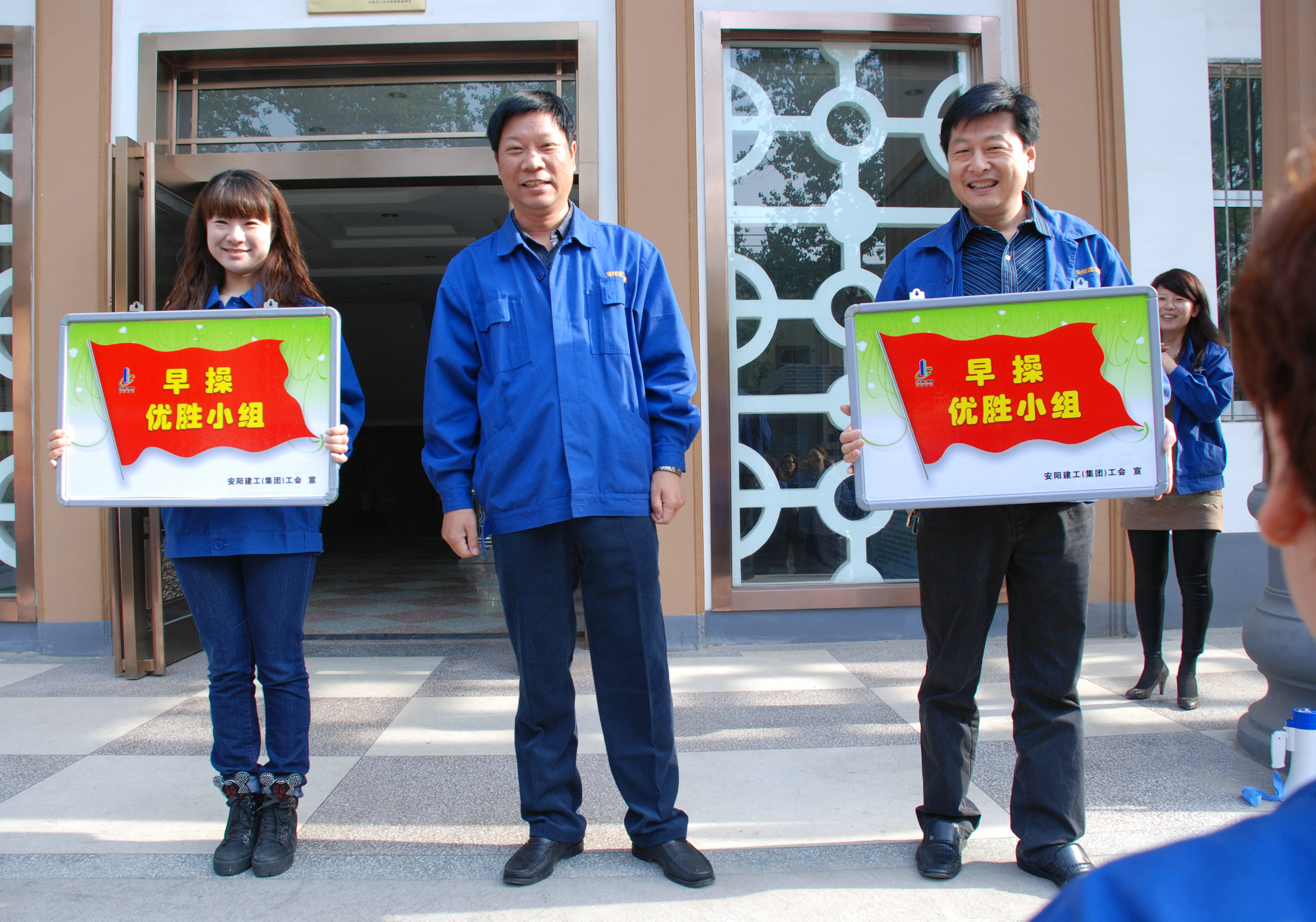 今年進(jìn)入四月份以來,公司工會(huì)在公司繼續(xù)開展了陽光早操運(yùn)動(dòng),并在七個(gè)小組之間開展了早操優(yōu)勝小組競(jìng)賽活動(dòng),通過七彩轉(zhuǎn)盤軍事化點(diǎn)名活動(dòng)等進(jìn)一步規(guī)范了早操紀(jì)律。在四月份競(jìng)賽中財(cái)務(wù)、審計(jì)小組和人力資源、勞務(wù)公司小組旗開得勝獲得了優(yōu)勝小組的榮譽(yù)稱號(hào),工會(huì)對(duì)優(yōu)勝小組進(jìn)行了表揚(yáng),當(dāng)場(chǎng)授予了早操流動(dòng)小紅旗。公司工會(huì)要求其他小組在5月份競(jìng)賽中向優(yōu)勝小組學(xué)習(xí),以他們?yōu)榘駱?,路在腳下,志在心中,你追我趕爭(zhēng)上游,百舸爭(zhēng)流奪紅旗,讓流動(dòng)紅旗真正的“動(dòng)”起來,讓更多的流動(dòng)紅旗在建工飄起來。