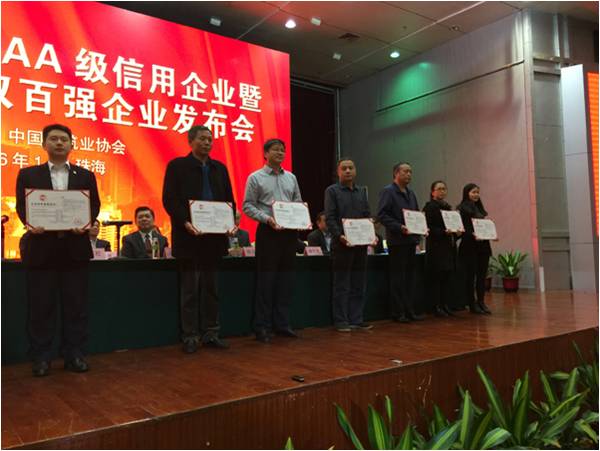 2016年1月7日,中國建筑業(yè)協(xié)會(huì)在珠海隆重召開全國建筑業(yè)AAA級(jí)信用企業(yè)暨中國建筑業(yè)雙百強(qiáng)企業(yè)發(fā)布會(huì),向我公司在內(nèi)的共277家2015年度全國建筑業(yè)AAA級(jí)信用企業(yè)和榮獲2014年度雙百強(qiáng)的企業(yè)頒發(fā)獎(jiǎng)牌和證書,我公司很榮幸的作為企業(yè)代表上臺(tái)領(lǐng)取了AAA級(jí)信用企業(yè)證書。