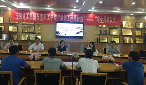 蟬鳴柳綠、活力七月。7月12日上午九點,安陽工學(xué)院土木與建筑工程學(xué)院閆春嶺副院長、尹濤老師帶領(lǐng)“卓越工程師班”學(xué)生到建工集團求學(xué)拜師。公司副總盧麗娜出席主持會議,人力資源部部長肖丹、工程管理部副部長常青及公司四個在建項目的八名優(yōu)秀技術(shù)人員與會。