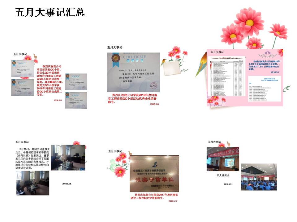 畢竟西湖六月中,風(fēng)光不與四時(shí)同。入夏以來,公司取得了眾多可喜的成績。5月,我公司榮獲2017年度河南省建設(shè)工程投標(biāo)企業(yè)、2018年度河南省工程建設(shè)QC小組活動(dòng)優(yōu)秀企業(yè)榮譽(yù)稱號。公司項(xiàng)目部常虹QC小組、原伏生QC小組榮獲2018年河南省工程建設(shè)QC小組活動(dòng)成果一等獎(jiǎng);郝志峰QC小組、康龍龍QC小組榮獲2018年河南省工程建設(shè)QC小組活動(dòng)成果二等獎(jiǎng)。