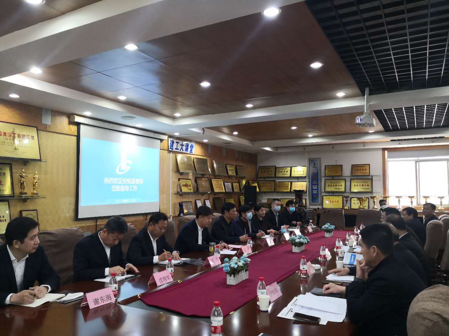 近日,安陽縣縣委書記王紅兵、縣政協(xié)主席李紅院、縣委常委、常務(wù)副縣長魏冬等縣級領(lǐng)導(dǎo)、及三產(chǎn)服務(wù)局、白璧鎮(zhèn)相關(guān)領(lǐng)導(dǎo)蒞臨安陽建工集團(tuán)調(diào)研指導(dǎo)工作。建工集團(tuán)黨委書記、董事長謝海如、總經(jīng)理謝飛、董事劉艷軍及公司經(jīng)營班子領(lǐng)導(dǎo)陪同參加會議。