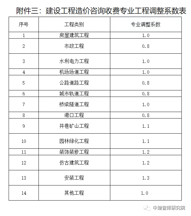 4.不同專業(yè)工程調(diào)整系數(shù)見附件三。