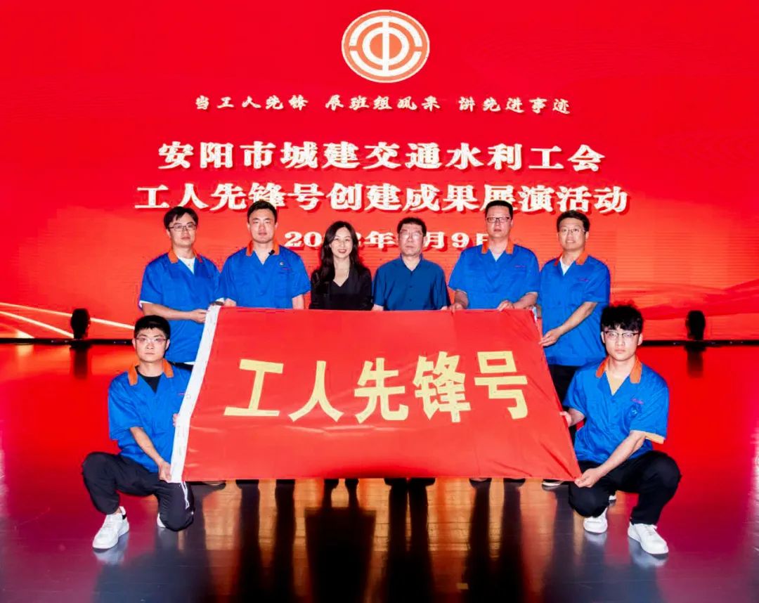 2022年6月9日下午,安陽(yáng)市城建交通水利系統(tǒng)“喜迎二十大 建功新時(shí)代”工人先鋒號(hào)創(chuàng)建成果展演活動(dòng),在安陽(yáng)市職工文體中心舉行,海悅國(guó)際大廈項(xiàng)目部被授予2022年安陽(yáng)市工人先鋒號(hào),項(xiàng)目經(jīng)理馮亮現(xiàn)場(chǎng)接受“工人先鋒號(hào)”旗幟。