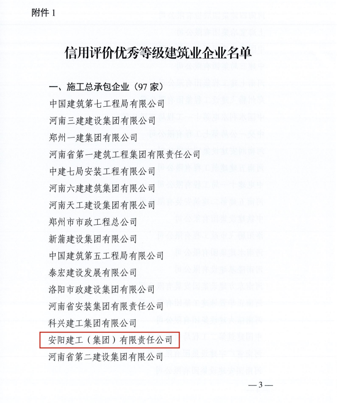 安陽建工作為全國建筑業(yè)AAA級(jí)信用企業(yè),70年來,始終堅(jiān)持以誠為本、以信立業(yè),多次被評(píng)為河南省守合同、重信用企業(yè)和省、市建設(shè)工程招標(biāo)投標(biāo)行業(yè)誠實(shí)守信單位。面向未來,公司將倍加珍惜榮譽(yù),不斷加強(qiáng)企業(yè)信用管理工作,用實(shí)際行動(dòng)踐行“以人為本、誠信共贏”的核心價(jià)值觀,積極履行社會(huì)責(zé)任,為河南省建筑業(yè)的健康快速發(fā)展貢獻(xiàn)更多的建工力量。