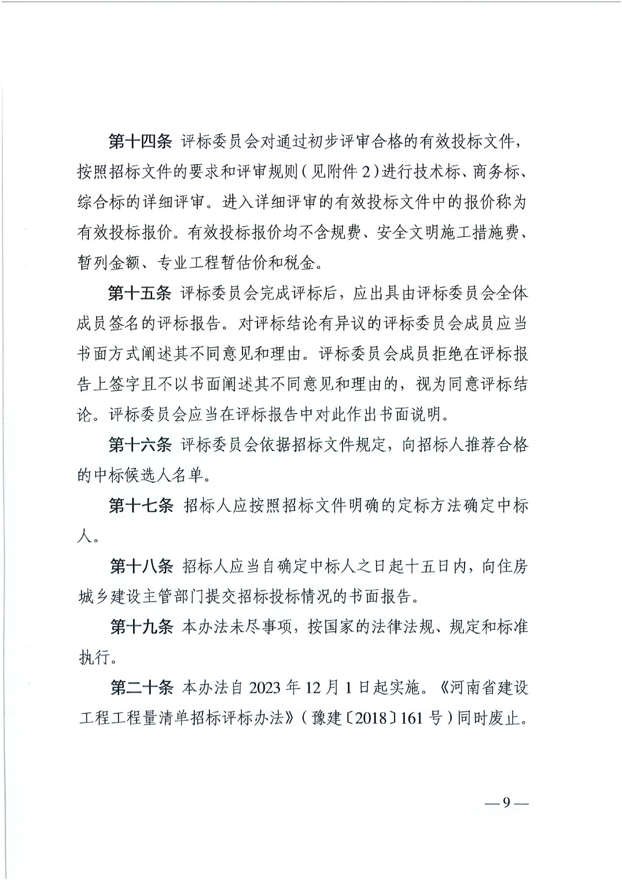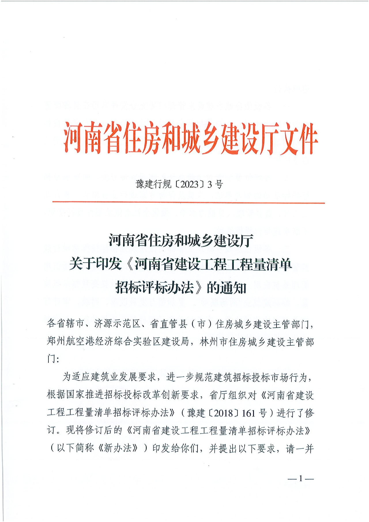 河南省住建廳印發(fā):河南省建設(shè)工程工程量清單招標(biāo)評(píng)標(biāo)辦法