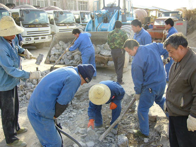 2004年初,六號車遠(yuǎn)征少洛(少林寺——鄭州)高速載譽歸來,主車司機崔國慶看著整修過的罐體,心中有些不悅,原來,修補攪拌葉片時電焊把罐體上的漆燒掉了幾片,俗話說的好:汽車的頭,司機的臉,這不僅影響了車的整體美,而且有悖于公司“攪拌運輸車是流動的廣告,是公司的戶外形象,是古城安陽街頭一道亮麗的風(fēng)景線”的要求。怎么辦?崔國慶二話沒說,從倉庫領(lǐng)出手提除銹機,打磨,除銹,刷防銹漆。司機班長楚樹林也熱情幫忙,兩人拉氣泵,自己動手當(dāng)起油工。剛開始沒有經(jīng)驗,噴出的色澤、薄厚不一,但很快就找到了竅門,經(jīng)過幾天忙碌,六號車變的如同新車。隨后,裝載機司機吳愛國也把裝40重新噴漆。泵工班維修混凝土泵已稱得上專家,馬士兵,李建民,孟慶印,張志秀,楊坤個個是一把好手,精心保養(yǎng)與維修,使2號、3號泵使用至今從沒換過大件,受到拖泵生產(chǎn)廠家售后人員的交口稱贊。2004年底,攪拌主機出現(xiàn)漏漿,其他部位分別出現(xiàn)不同程度的磨損,生產(chǎn)技術(shù)部決定:以我為主,適當(dāng)聘請外部專業(yè)人員。機修、泵工、生產(chǎn)、司機班員工以及管理人員全力以赴,并且根據(jù)多年使用的經(jīng)驗,對不很合理、問題多發(fā)部位進行整改,收效甚大。從此,利用節(jié)假日維修主機成了不成文的規(guī)定。2007年春節(jié)前后近40天時間,公司對攪拌主機、管理系統(tǒng)進行大規(guī)模改造,并新增骨料倉、粉料倉各一座,其中有一半多的工作是公司員工動手做的。