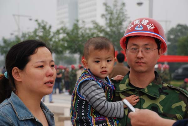 根據(jù)災(zāi)區(qū)援建任務(wù)的需要,接市援建指揮部的命令,我公司迅速?gòu)脑ㄍ粨絷?duì)預(yù)備隊(duì)員中挑選了13名優(yōu)秀隊(duì)員,在隊(duì)長(zhǎng)席宏偉的帶領(lǐng)下,攜帶翻斗車等機(jī)械設(shè)備,昨日早晨,在市政府副市長(zhǎng)倪豫州和建委主任高峰等領(lǐng)導(dǎo)的歡送下,啟程赴川。在此之前,公司領(lǐng)導(dǎo)專門召集了第三批赴川人員歡送會(huì),介紹了前期抗震救災(zāi)情況,提出了殷切的希望,并給每個(gè)隊(duì)員配發(fā)了服裝、安全帽等物品,并為全體隊(duì)員設(shè)宴壯行。