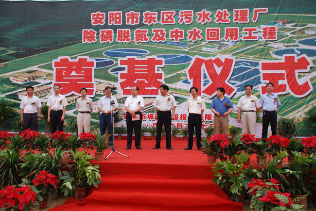 6月27日,集團(tuán)公司承建的安陽市東區(qū)污水處理廠除磷脫氮及中水回用工程舉行開工奠基儀式,這是我市繼晃家村污水處理廠工程竣工后,為進(jìn)一步落實(shí)科學(xué)發(fā)展觀、改善城區(qū)人居環(huán)境、構(gòu)建和諧社會而實(shí)施的又一生態(tài)工程和民心工程。安陽市副市長倪豫洲等領(lǐng)導(dǎo)出席了奠基儀式,安陽市城市建設(shè)投資有限公司、首創(chuàng)水廠、安陽建工集團(tuán)及監(jiān)理單位的領(lǐng)導(dǎo)、員工參加了儀式。