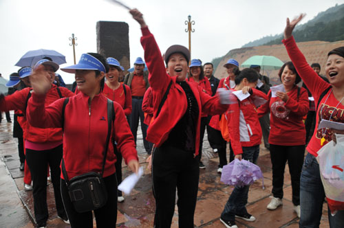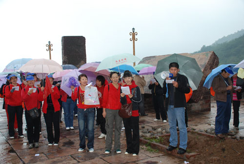 天空雖然飄著細(xì)雨,但大家熱情高漲.由聶磊、肖丹、黨飛主持的紅歌會(huì)上,大家用歌聲向新中國60歲生日獻(xiàn)上了一份厚禮, 《咱建工的人》唱出了建工人的氣勢和豪情;拉歌賽表達(dá)了建工人的一份愛國之情,馬主席作了熱情洋溢地動(dòng)員講話,他說“這是公司工會(huì)組織的人數(shù)最多,規(guī)模最大的一次旅游,意義重大,這不僅是一次娛樂活動(dòng),更是集團(tuán)公司精神風(fēng)貌的展示活動(dòng)。今天讓我們放飛心情,和大自然親密接觸,最后祝愿大家四句話:開心出發(fā),安全第一;放松游山,凱旋而歸!”
